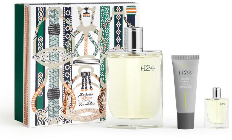 HERMÈS H24 Christmas limited edition, 1 db, Férfi szettek férfiaknak, Támogassa kedvenc illatának intenzitását. Azért, hogy az Ön mindennapi fürdőszobai rutinja tökéletesen összhangban legyen, a férfi HERMÈS H24 Christmas limited edition parfüm-szett magán az illaton kívül még ápoló kozmetikát is tartalmaz. Tulajdonságok: miniatűr kiszerelésű termékeket tartalmaz előn