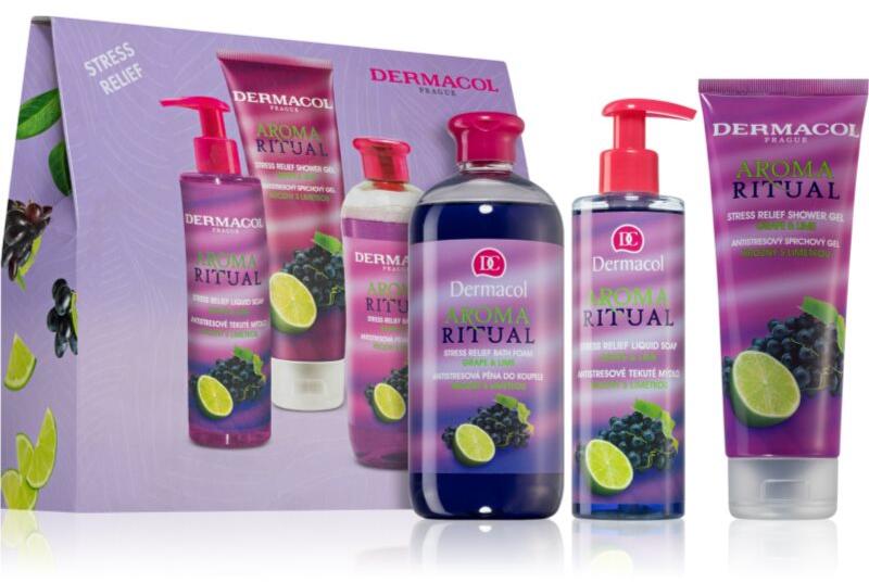 Dermacol Aroma Ritual Grape & Lime, , Tusfürdők nőknek, Egy csomagban minden a szép bőrért. A praktikus Dermacol Aroma Ritual Grape & Lime kozmetikai készlet Önnek, és ajándékként a szeretteinek is örömet szerez majd. A szett tartalma:stresszoldó fürdőhab 500 ml antistressz folyékony szappan 250 ml antistressz tusfürdő gél 250 mlTulajdonságok: bársonyosan finommá é