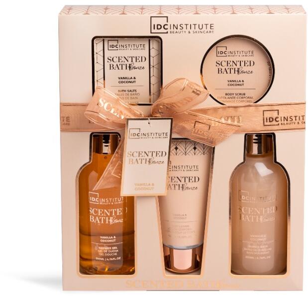 Ajándékkészlet a test pihenéséhez fürdőzés közben! Ez a vaníliás és kókuszos illatú ajándékkészlet segít megtisztítani és hidratálni a bőrt, miközben kényeztető élményt nyújt a fürdőzés során. Tökéletes ajándék mindenki számára, aki szeretné élvezni a nyugtató és frissítő fürdőélményeket.