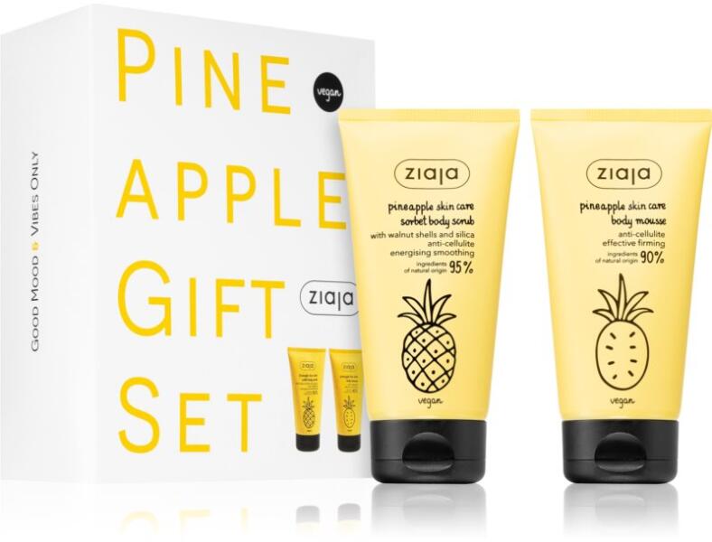 Ziaja Pineapple, , Kozmetika szettek nőknek, Lepje meg magát vagy szeretteit Ziaja Pineapple kozmetikai szettel. A szett tartalma:Ziaja Pineapple testhab narancsbőrre 160 ml Ziaja Pineapple gyengéd szorbet testre peeling hatással 160 mlTulajdonságok: eltávolítja az elhalt hámsejteket hidratálja és táplálja a bőrt megbirkózik a narancsbőrrel javítja a bőr rugalmasságát és elasz