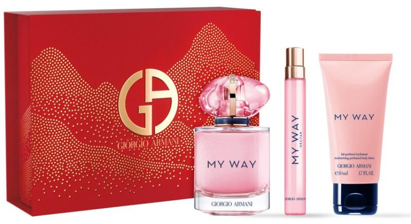 Lepd meg szeretteidet az ikonikus My Way Eau de Parfum Nectar illattal ajándékkészletben. Ez a Giorgio Armani készlet a My Way Eau de Parfum Nectar (90 ml) női illatot, az illat utazási változatát (10 ml) és az ugyanebbe a termékcsaládba tartozó testápolót (50 ml) tartalmazza.