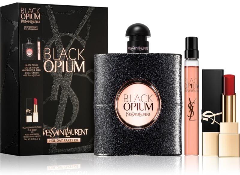 Yves Saint Laurent Black Opium, , Női szettek nőknek, Szerezzen magának örömöt kedvelt illatának előnyös szettjével. A női Yves Saint Laurent Black Opium parfüm-szett dupla örömöt szerez – szép csomagolásával és plusz ajándékkal. Tulajdonságok: krémes állag tartalmazza a teljes mértékű illatot és annak miniatűr változatát is minden nőnek örömöt szerez A szett t