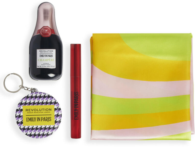 A szett tartalma: Ajakbalzsam Champagne Problems 1 db Krémes ajakrúzs Just A Kiss Emily Red 1 db Szatén kendő rágógumi rózsaszín, lime és sárga színben 1 db Kulcstartó tükörrel 1 db