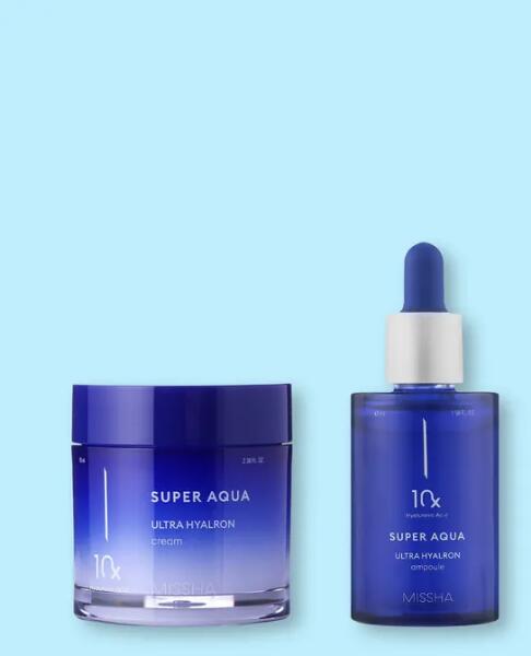 A Super Aqua Hyalron Duo Set az a készlet, amire szükséged van ❤️ Ez a Missha szett a Super Aqua Ultra Hyalron Cream (70 ml) és a Super Aqua Ultra Hyalron Ampoule (47 ml) terméket tartalmazza, amelyek szuper hidratálást biztosítanak ? Többféle hialuronsav a Super Aqua komplexszel tökéletesen megőrzi a nedvességet! A termékek ideálisak a ráncok csökkentésére és ragyogásár