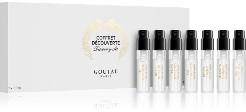 GOUTAL Discovery Set, 7x1,5 ml, Női szettek nőknek, Ne hagyjon fel az ezidáig ismeretlen akkordok és illatok felfedezésével. A női GOUTAL Discovery Set parfüm-szett ideális alkalmat nyújt ahhoz, hogy új illatkompozíciókat ismerhessünk meg és próbálhassunk ki. Miniatűr kiszerelésben azonnal megragadják a szívét. A szett tartalma:Goutal Eau d'Hadrien Eau de Parfum 1,5 ml Goutal