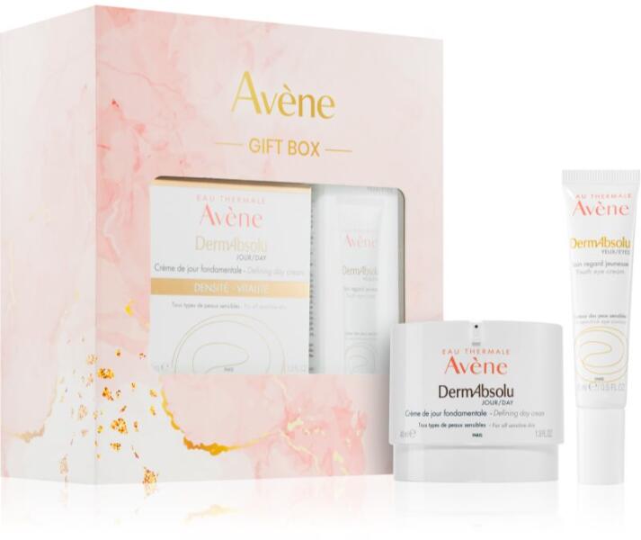 Avène DermAbsolu Gift Set, db, szemkrémek és gélek unisex, Minden egy csomagban, amire a szép megjelenésű arcbőrre szükség lehet. A kiváló Avène DermAbsolu kozmetikai készlet önnek, és ajándékként a szeretteinek is örömet szerez. A szett tartalma:Avène DermAbsolu fiatalító szemkörnyékápoló krém 15 ml Avène DermAbsolu megújító nappali krém a ráncok ellen 40 mlTula