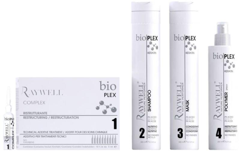 Raywell BIO Regeneráló és Mélyhidratáló Csomag tartalma: BIO PLEX 1. Complex Rekonstruáló Ampulla, 10x5ml, 13.900 Ft BIO PLEX 2. Plex Sampon - Tápláló, Cuticula záró, No SLS, No Parabén, 300 ml, 4.600 Ft BIO PLEX 3. Plex Maszk - Mélyhidratáló, Keratin és Triglycerin tartalmú, No Parabén, 300 ml, 4.600 Ft BIO PLEX 4. Plex Polymer Spray - Szerekezet visszaállító, keratinnal, 2
