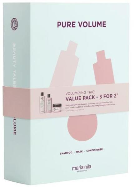 Maria Nila Pure Volume Holiday Box, 3 db, Kozmetika szettek nőknek, Lepje meg magát vagy szeretteit a nagyszerű Maria Nila kozmetikai szettel. A válogatott hajápoló készítményekkel teli csomag ajándékként mindig örömöt szerez. A szett tartalma:Maria Nila Pure Volume tömegnövelő sampon a selymes hajért 350 ml Maria Nila Pure Volume tömegnövelő kondicionáló gyenge szálú haj
