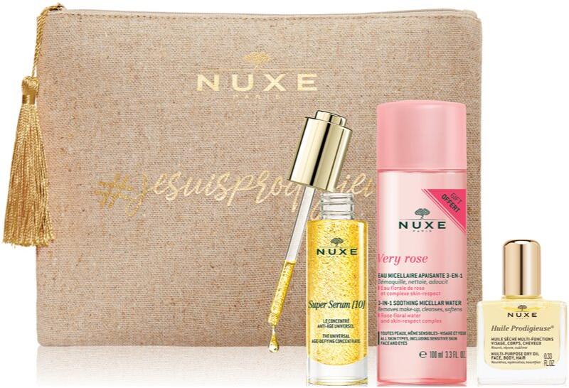 Nuxe Huile Prodigieuse Set, 3 db, Kozmetika szettek nőknek, Minden egy csomagban, amire a szép megjelenésű arcbőrre szükség lehet. A kiváló Nuxe Huile Prodigieuse kozmetikai készlet önnek, és ajándékként a szeretteinek is örömet szerez. A szett tartalma:Nuxe Very Rose 3v 1 micelární voda nyugtató micellás víz az arcra és a szemekre 100 ml Nuxe Super Serum ránctalanító sz