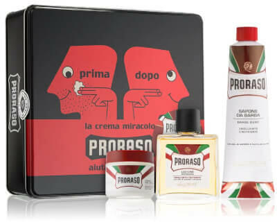Elegáns fém díszdoboz minőségi készítményekkel az olasz Proraso-tól, szantálfa illattal. A legvastagabb szakállra tervezve. A szett tartalma: Tápláló after shave szantálfával Sandalwood (After Shave Lotion) 100 ml Tápláló krém borotválkozás előtt Red Sandalwood (Pre-Shave Cream) 100 ml Tápláló borotvakrém Red Sandalwood Red Sandalwood (Shaving Cream) 150 ml A doboz mére