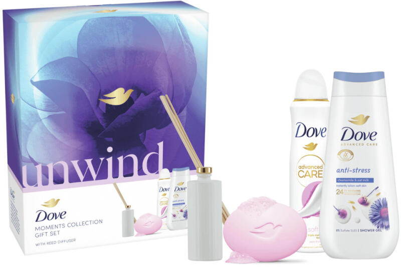 Kapcsolódj ki a Dove Unwind ajándékcsomaggal! Az Anti-Stress krémtusfürdő kamilla és zabtej illatával segít ellazulni, a Soft Feel izzadásgátló üde illatával járul hozzá, hogy egész nap illatos és magabiztos lehess, a Relaxing krémszappan pedig tisztává és puhává varázsolja a bőröd. Az ajándékcsomagban találsz emellett egy pálcikás illatosítót, hogy teljes legyen