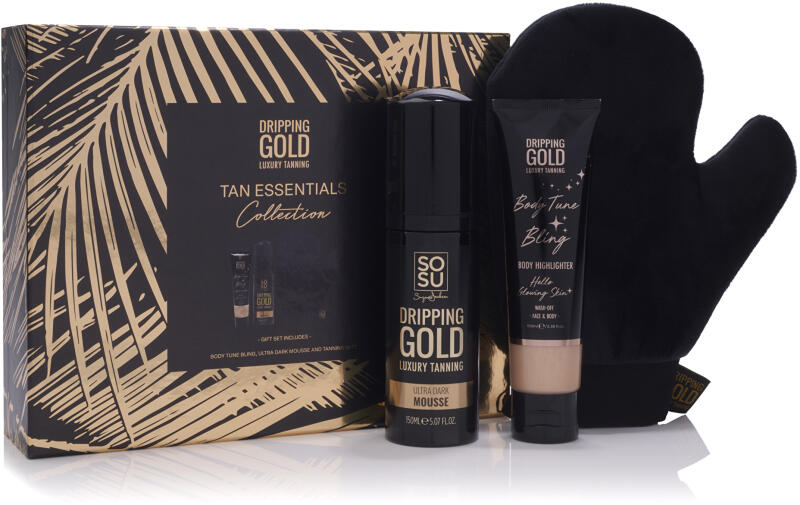 A szett tartalma: Önbarnító hab árnyalat: Ultra Dark Testfényesítő Body Tune Bling Alkalmazási kesztyű Bemutatjuk a Tan Essentials karácsonyi készletet a barna és ragyogó bőr szerelmeseinek. Adjon azonnali magabiztosságot a lebarnult bőrnek köszönhetően az ultra-sötét árnyalatú önbarnító habbal. Intenzív aranyszínű árnyalat, hidratálás és egzotikus illat, amely min