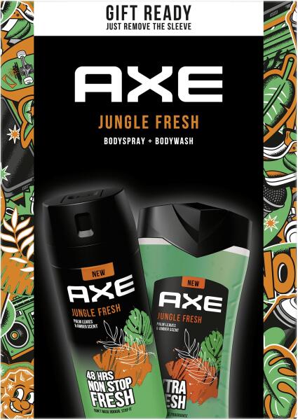 Axe Jungle Fresh, 2 db, Kozmetika szettek férfiaknak, Lepje meg magát vagy szeretteit Axe Jungle Fresh kozmetikai szettel. A szett tartalma:Axe Jungle Fresh dezodor és testspray uraknak 150 ml Axe Jungle Fresh tusfürdő gél arcra, testre és hajra 250 mlTulajdonságok: lemossa a bőrt és eltávolítja a szennyeződéseket lágyítja és elasztikusabbá teszi a bőrt hatékony védelmet nyúj