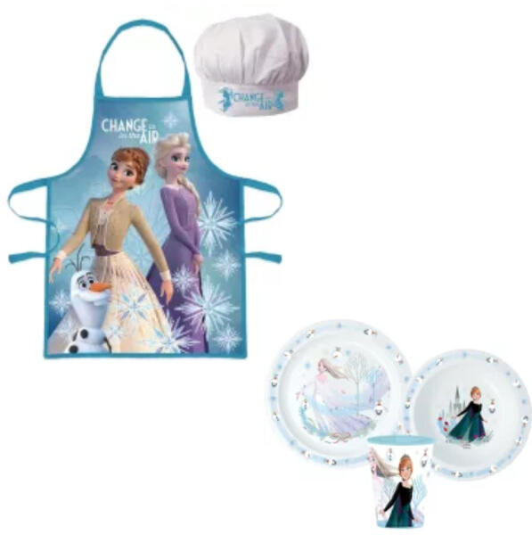 Disney Frozen - Jégvarázs mintás karácsonyi ajándékcsomag! Lepd meg Jégvarázs rajongóit ezzel a bájos, konyhai ajándékcsomaggal, amely garantáltan mosolyt csal az arcokra! A csomag tartalma: Jégvarázs mintás gyerek kötény hozzá tartozó gyerek kuktasapkával Jégvarázs mintás lapos tányér - műanyag Jégvarázs mintás mélytányér - műanyag Jégvarázs mintás műanyag po