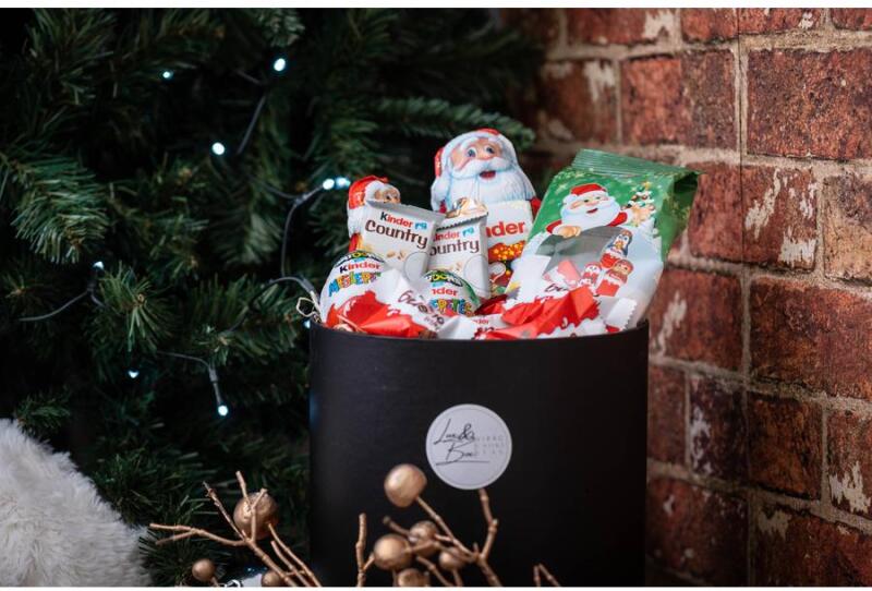Tartalma:1 db fekete henger doboz 15 cm1 db közepes méretű Kinder Mikulás csoki 55g 1 db nagy méretű Kinder Mikulás csoki 110g 1 doboz Kinder Mix 1 db Kinder tojás 2 db Kinder Country vagy Happy Hippo szelet 1 csomag mini Bueno