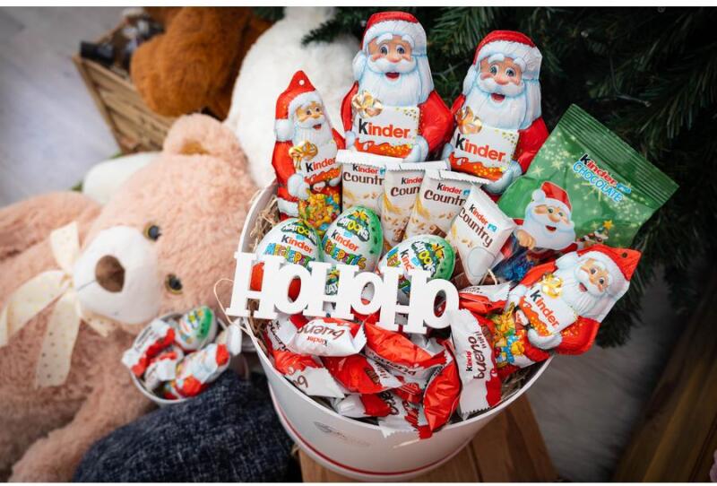A doboz átmérője kb 23-26 cm, fehér színű, piros szatén szalaggal kötjük át. A magassága kb 13 cmA Kinder Mikulás Box tartalma: 2 db nagy Kinder Mikulás csoki 110G 2 db közepes Kinder Mikulás csoki 55G 4 db Kinder meglepetés tojás, Surprise 4 db Happy Hippo/Country/Cards szelet 1 zacskó Mikulás falatok/Mini Mikulás tojás/Mikulás házikó 1 zacskó Mini Bueno/Schoko Bons/Mikul