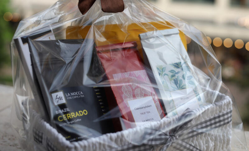 La Mocca Kávé &Tea Ajandékcsomag Tökéletes ajándék bármely alkalomra A csomag tartalma: 1x 300 gr La Mocca szemes kávé 1x 125 gr La Mocca szemes kávé 1x 70 gr prémium szálas tea különlegessség (zöld, gyümölcs, fekete, herba) 1x 100gr Lindt csokoládé 1x Ajándékkosár csomagolással és díszítéssel. Az ajándékcsomag tartalmának súlya, a kávék és teák különbö