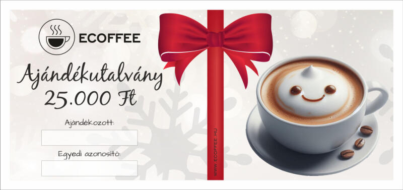 Lepd meg szeretteidet a tökéletes ajándékkal! Az eCoffee. hu ajándékutalvány mindig jó választás – a kávérajongók garantáltan megtalálják nálunk kedvenceiket. Válassz 5.000-30.000 Ft közötti ajándékutalványaink közül a felső sorban, majd tedd be a kosárba az online utalványt. A megajándékozott bármilen termékre levásárolhatja nálunk 1 éven belül. eCoffee. hu