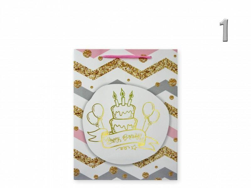 Ajándéktasak Happy Birthday közép 18x8x23cm 4féle 03115 4 féle típus választható Befoglaló méretek 18x8x23 cmDísztasak MAnyaga papír