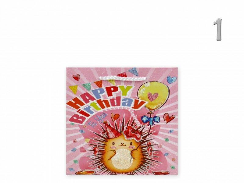 Ajándéktasak Happy Birthday állatos glitteres kicsi 15x6x15cm 4féle 02811 4 féle típus választható Befoglaló méretek 15x6x15 cmDísztasak SAnyaga papír