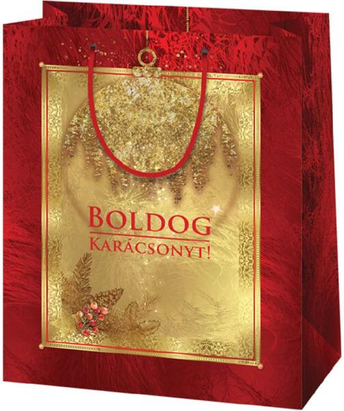Boldog Karácsonyt feliratos, arany-piros színű közepes méretű exkluzív ajándéktáska 18x10x23cm Hivatalos magyarországi forgalmazótól. Leírás: Ez a közepes méretű ajándéktáska az ünnepi hangulatot képviseli a legjobban. Az elegáns Boldog Karácsonyt felirat, amely a táska középpontjában helyezkedik el, mindenkinek az év legszebb időszakát juttatja eszébe. A feliratot