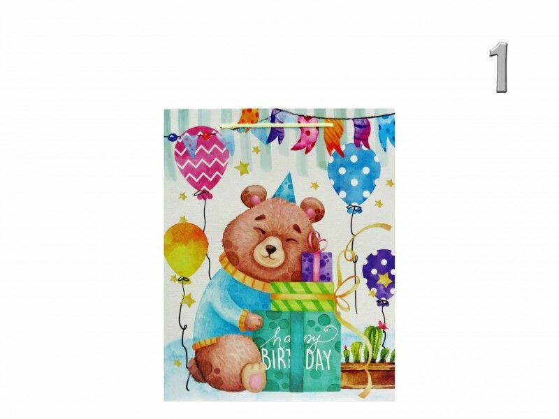 Ajándéktasak Happy Birthday állatos közép 18x8x23cm 4féle 03045 4 féle típus választható Befoglaló méretek 18x8x23 cmDísztasak MAnyaga papír
