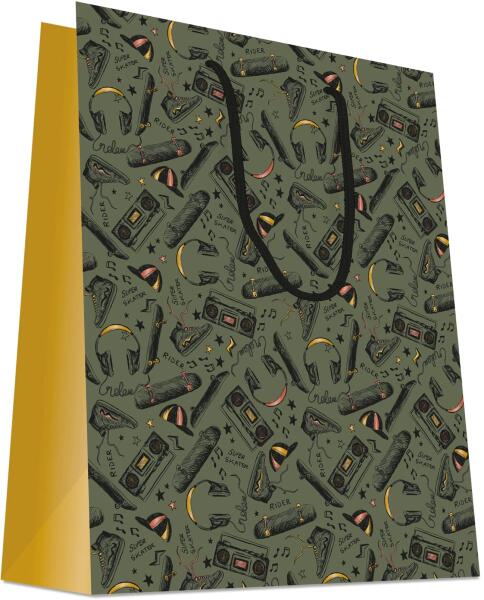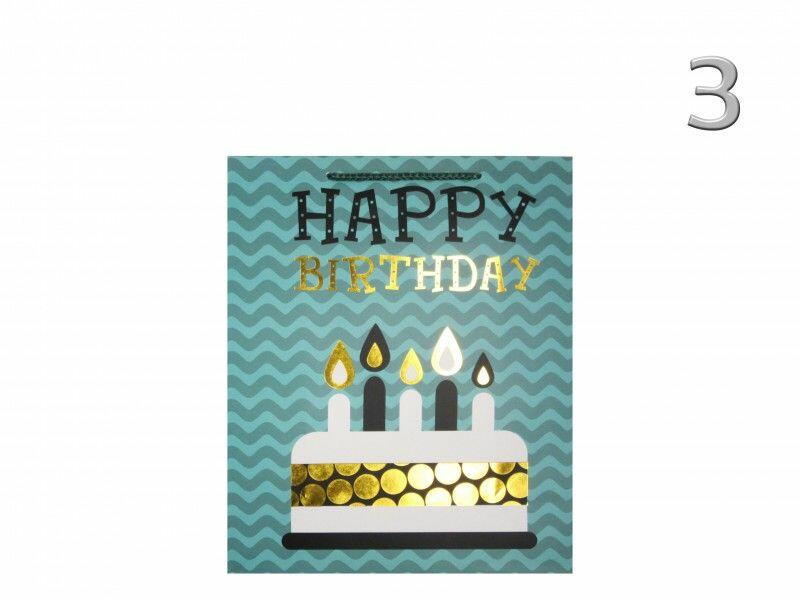 Ajándéktasak Happy Birthday zöldes/arany közép 18x10x23cm 2féle 6895 4féle típus választhatóDísztasak MBefoglaló méretek 18x10x23 cmAnyaga papír