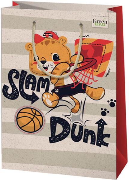 Green Grass Kosárlabdázó oroszlán mintás nagy méretű prémium ajándéktáska 26x14x33cm Hivatalos magyarországi forgalmazótól. Leírás: Ez a nagy méretű ajándéktáska a Green Grass környezetbarát szériából egy igazán egyedi darab, melyen egy oroszlán látható, amint kosárlabdázik. A dizájn nem csak a sport és az állatok szerelmeseinek tökéletes, hanem mindazok szám