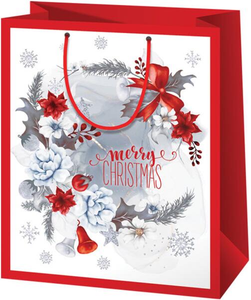 Cardex: Piros-fehér csengettyűs mintázatú közepes méretű ajándéktáska 17x10x23cm Hivatalos magyarországi forgalmazótól. Leírás: Ez a Cardex piros-fehér ajándéktáska tökéletes kiegészítője a karácsonyi ajándékozásnak! A gyönyörűen kidolgozott, csengettyűkkel, hópelyhekkel és ünnepi virágokkal díszített minta igazi ünnepi varázst kölcsönöz a táskának, mik