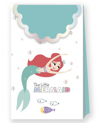 Ajándék táska - Ariel, a kis hableány mennyiség: 6 db anyag: papír Nagyszerű ajándéktáska , mely az Ariel, a kis hableány motívumaival van ellátva. Alkalmas, ha az ünnepség vendég einek kis figyelmességet szeretne át adni. Továbbá olyan ünnepeltnek szánt kis ajándék átadására is alkalmas, aki szereti ezt a mesehőst.