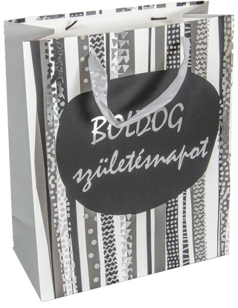 Papír tasak szülinapos ezüst/fekete 26*32cm Ajándékot adni és kapni mindig öröm. Nálunk minden alkalomhoz eltérő mintájú ajándéktasakok közül válogathatsz, hogy a csomagolás a legmegfelelőbb legyen, bármilyen esemény is közelegjen. Esküvő, szülinap, ballagás? Nézz körül.