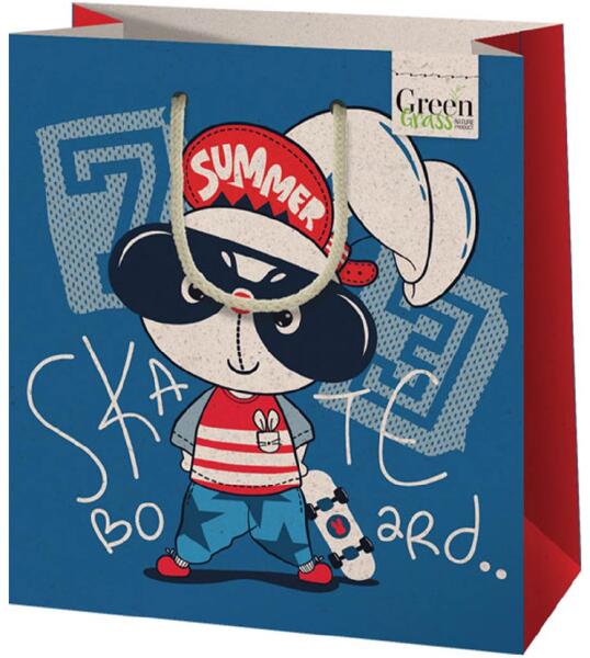 Green Grass Gördeszkázó nyuszi mintás közepes méretű ajándéktáska 18x10x23cm Hivatalos magyarországi forgalmazótól. Leírás: Ez a közepes méretű Green Grass ajándéktáska egyedi és stílusos kivitelben készült a fiatalos és dinamikus ajándékadók számára. A gördeszkázó nyuszi minta nem csak figyelemfelkeltő és aranyos, de a fiatalabb korosztályok között kifejezet