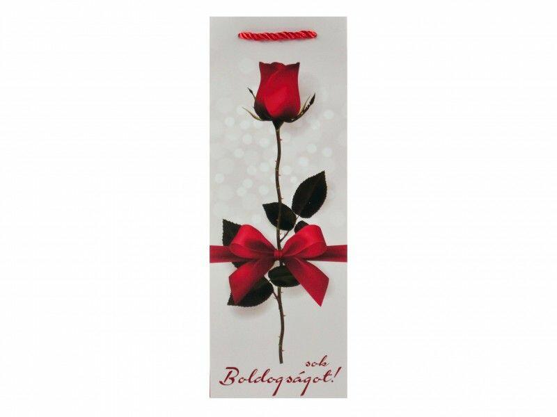 Ajándéktasak italos Sok Boldogságot rózsás 12,5x10x34cm 02139 Befoglaló méretek 12.5x10x34 cmAnyaga papír