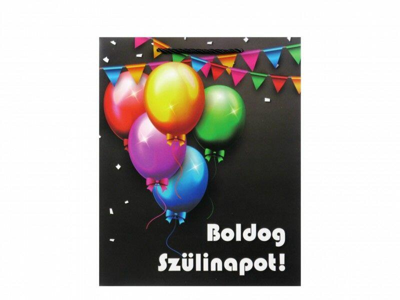 Ajándéktasak Boldog Szülinapot fekete lufis nagy 26x12,5x32cm 02103 Dísztasak LBefoglaló méretek 26x12.5x32 cmAnyaga papír