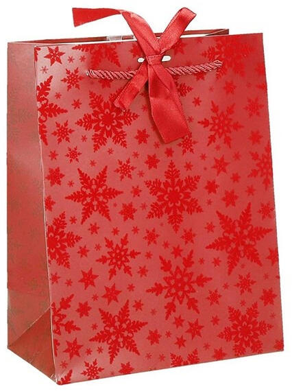 Dísztasak CREATIVE Deluxe Plus M 18x23x10 cm karácsonyi csillagos matt piros sodort füles masnival Papír ajándék dísztasak, CREATIVE Deluxe Plus, piros színben, karácsonyi csillag mintás, sodort füles, masnival. Mérete: 18x23x10 cm.