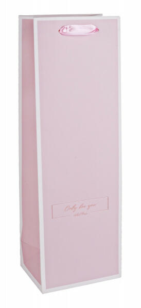Boros tasak rózsaszín Ezzel a gyönyörű, pasztell rózsaszínű, oldalán fehér csíkos boros tasakkal meghittebbé varázsolhatod az ajándékozás pillanatát. Akár bort, pezsgőt vagy konyakot is beletehetsz, az ajándékozott hölgy biztosan el lesz ragadtatva. Elegáns megjelenésének köszönhetően bármilyen ünnepi alkalomhoz tökéletes megoldás lesz. Papírból készült, divato