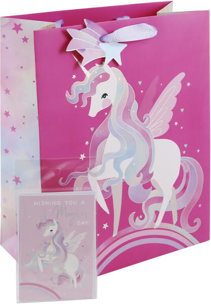 Unikornisos közepes méretű ajándéktáska 18x23x10cm-es Hivatalos magyarországi forgalmazótól. Leírás: Varázsolj egy kis mágikus hangulatot az ajándékoddal ezzel az elbűvölő, közepes méretű unikornisos ajándéktáskával! Az álomszerű rózsaszín háttér előtt megjelenő unikornis mindenkit elvarázsol majd, legyen szó gyermekről vagy felnőttről. A táska mérete, 18x23