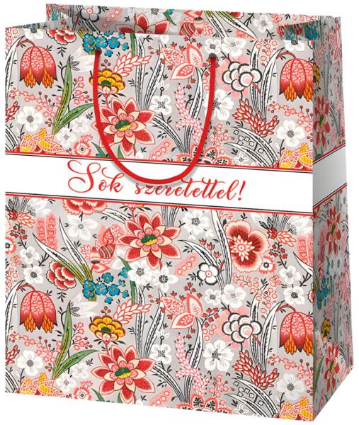Sok szeretettel! virágos közepes méretű ajándéktáska 18x23x10cm Hivatalos magyarországi forgalmazótól. Leírás: feltöltés alatt... Tulajdonságok: feltöltés alatt... Csomag tartalma: feltöltés alatt...