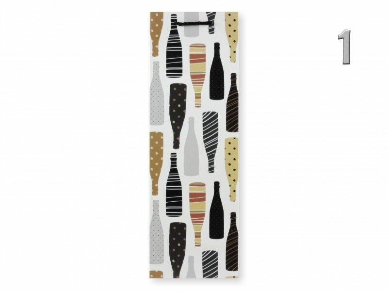 Ajándéktasak italos 12x9x36cm 4féle 05063 Üveg vagy pohár mintás, italos ajándéktasak bármilyen alkalomra, 4 féle mintával. 4 féle típus választhatóBefoglaló méretek 12x9x36 cmAnyaga papír