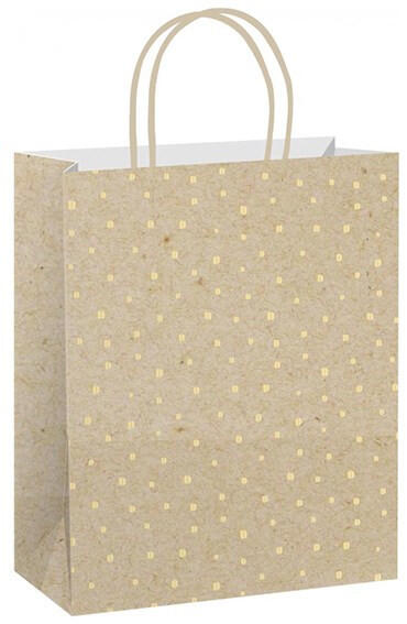 Dísztasak CREATIVE ECO Special Plus M 18x23x10 cm kraft fóliás apró mintás sodort füles Ajándéktasak, M 18x23x10 cm méretben, apró mintás, sodort füles.