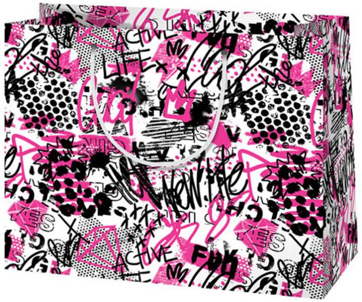 Csajos Graffiti mintás közepes méretű ajándéktáska 18x22,7x10cm Hivatalos magyarországi forgalmazótól. Leírás: Egy igazán vagány és egyedi csomagolásban adhatod át az ünnepelt lánynak az ajándékát ebben az ajándékszatyorban. A tasak méretének köszönhetően egy közepes méretű ajándék könnyen elfér benne, zsinóros fülével pedig remekül lehet majd hordozni azt.