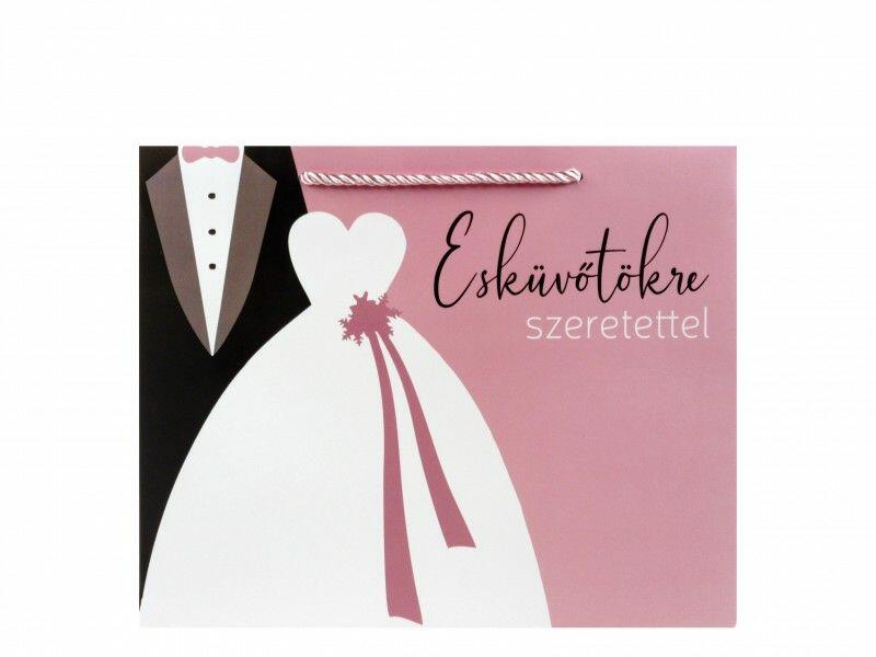 Ajándéktasak fekvő Esküvőtökre szeretettel nagy 32x12,5x26cm 02121 Dísztasak LBefoglaló méretek 32x12.5x26 cmAnyaga papír