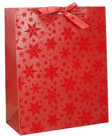 Dísztasak CREATIVE Deluxe Plus L 26x33x12 cm karácsonyi csillagos matt piros sodort füles masnival Papír ajándék dísztasak, CREATIVE Deluxe Plus, piros színben, karácsonyi csillag mintás, sodort füles, masnival. Mérete: 26x33x12 cm.
