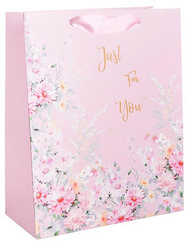 Dísztasak matt 26x32 cm rózsaszín virágos Just for you felirattal méret: 26x32 cm rózsaszín virágos Just for you felirattal