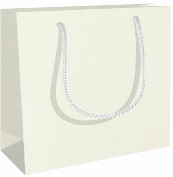 CD méretű, vaj színű zsinórfüles papírtasak matt fóliával. Ideális megoldás olyan butikok, ajándékboltok, kiskereskedők számára, akik kisebb termékeket szeretnének elegáns megjelenésben átadni. A tasak méretei: szélesség: 15 cm magasság: 15 cm talp szélesség: 8 cm 150 g/m2 prémium minőségű, FSC minősített Pergraphica alapanyagú papírból készült. 400 g/m2 fül-