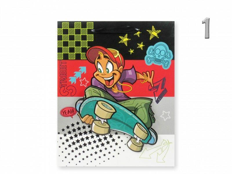 Ajándéktasak kisfiú 3D nagy 26x10x32cm 4féle 02949 4 féle típus választhatóBefoglaló méretek 26x10x32 cmDísztasak LAnyaga papír