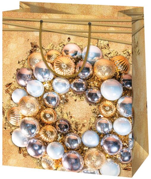 Cardex: Arany színű nagy méretű ajándéktáska 26x13x33cm Hivatalos magyarországi forgalmazótól. Leírás: Ez a Cardex arany színű ajándéktáska a karácsonyi elegancia megtestesítője. A táska dizájnját egy csillogó arany, ezüst és gyöngyházfényű karácsonyi gömbökből összeállított koszorú díszíti, amely igazi luxushangulatot sugároz. A tágas, 26x13x33 cm-es mér