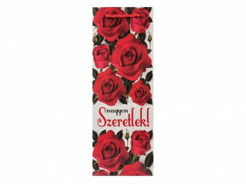 Ajándéktasak italos Nagyon szeretlek rózsás 12,5x10x34cm 02147 Befoglaló méretek 12.5x10x34 cmAnyaga papír