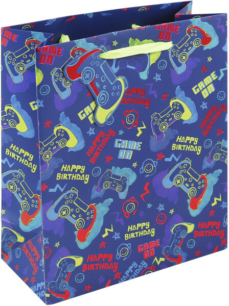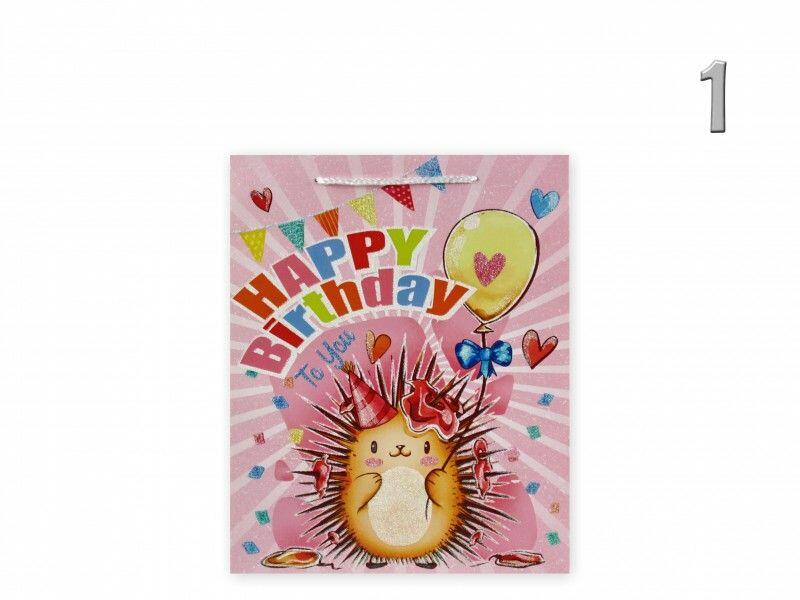 Ajándéktasak Happy Birthday állatos glitteres közép 18x8x23cm 4féle 02812 4 féle típus választható Befoglaló méretek 18x8x23 cmDísztasak MAnyaga papír