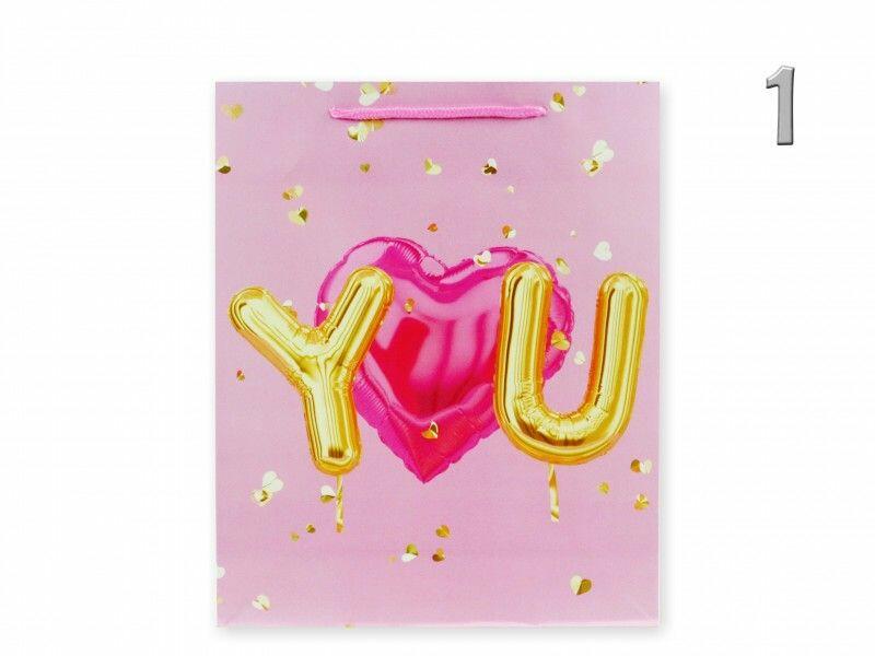 Ajándéktasak szíves lufis rózsaszín nagy 26x10x32cm 4féle 03038 4 féle típus választható Befoglaló méretek 26x10x32 cmDísztasak LAnyaga papír